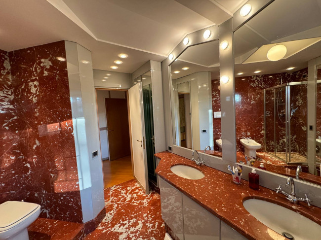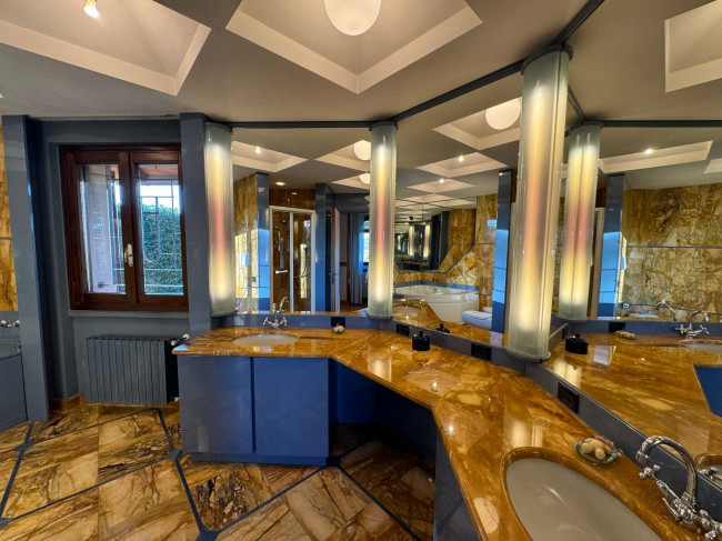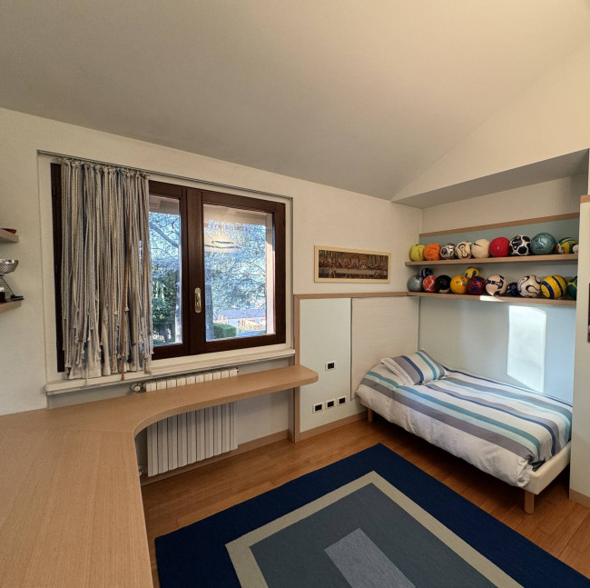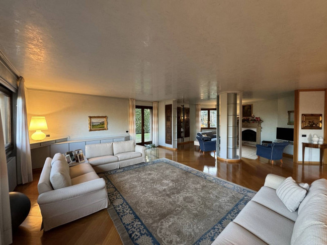 CANTU': Villa singola di c.a. totali 728 mq disposta su tre livelli composta da piano terra: ingresso, doppio soggiorno con camino, sala da pranzo, cucina abitabile, disimpegno, guardaroba, studio e bagno di servizio; piano primo: camera da letto matrimoniale con cabina armadio e bagno, due camere da letto con bagno; piano seminterrato con ingresso indipendente: taverna con camino, bagno di servizio, lavanderia, stireria, guardaroba, cantina e dispensa. Appartamento semi indipendente composto da: zona giorno con angolo cottura, disimpegno, camera da letto e bagno. Centrale termica. Autorimessa quadrupla oltre posti auto coperti. Giardino c.a. 2.145 mq.